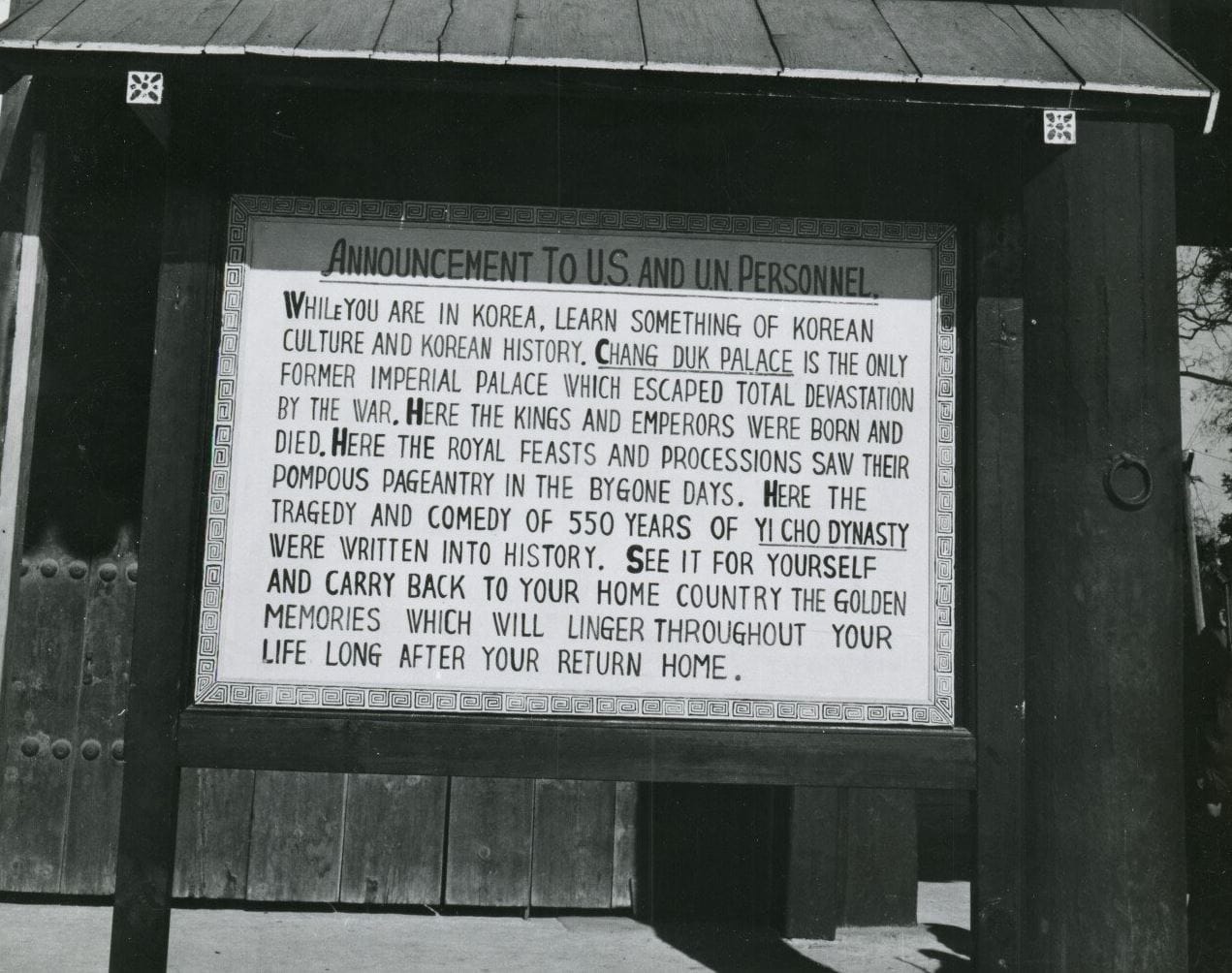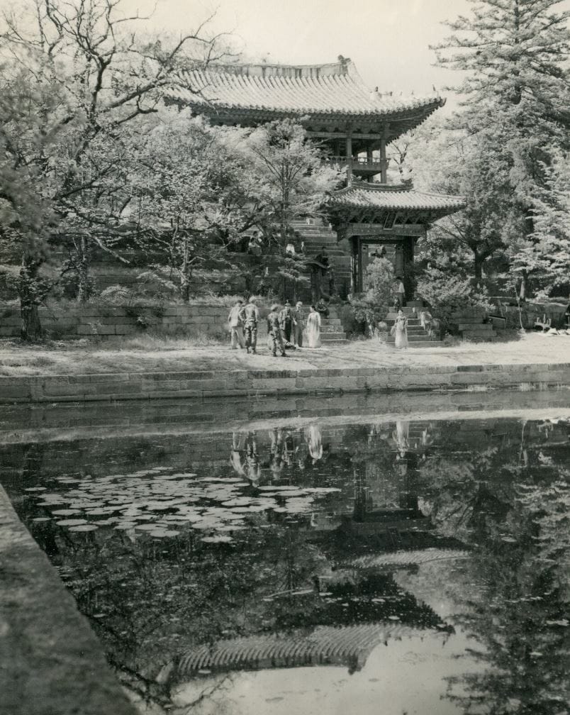 The appearance of Changdeokgung's Secret Garden captured by an American war correspondent right after the Korean War. In particular, "550" years on the announcement board (on the bottom left) implies these black and white photos were taken in 1955, as this Palace had been first built in 1405.💡